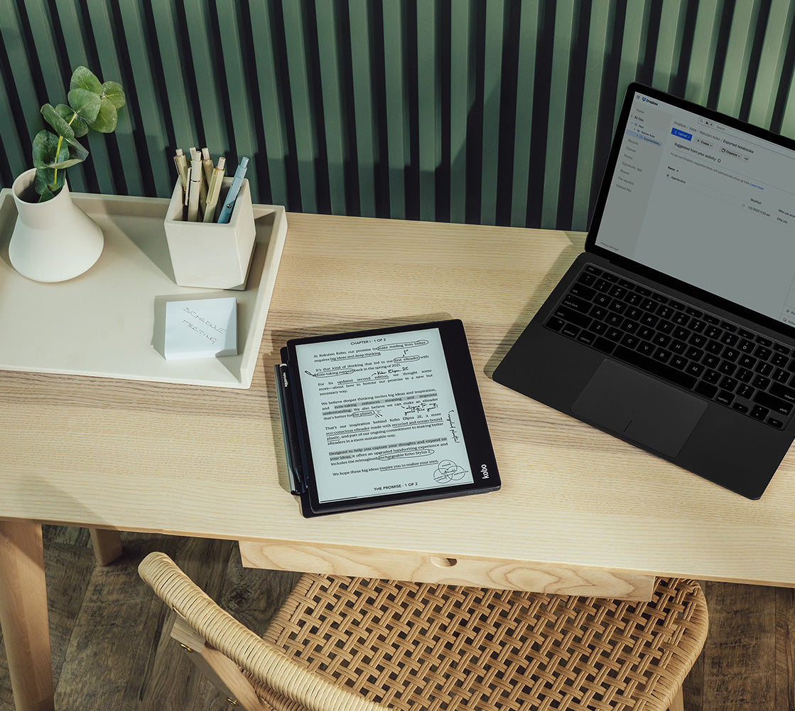 Write directly on eBooks and PDFs* with Kobo Elipsa 2E’s improved note-taking experience. Create and organize notebooks that do more than paper, and export them with integrated cloud services. Read and write comfortably on a 10.3" touchscreen with ComfortLight PRO to reduce blue light and ease eyestrain. Listen to Kobo Audiobooks with Bluetooth® wireless technology†. With 32GB of storage, carry your entire library and all your notes wherever you go. Made with recycled and ocean-bound plastic, the eco-conscious Kobo Elipsa 2E is designed to capture all your big thinking.